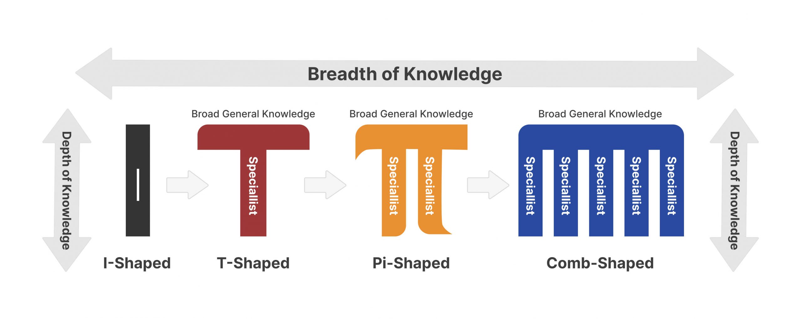 olmak üzere tüm disiplinlerden yeterince değil; baya derin bir şekilde anlaması ve hakim olması gerekliliğini ortaya koymuştur. Bu da aşağıdaki şekilde görüleceği üzere I-Shaped bir kariyer yolundan Comb-Shaped bir kariyer yoluna geçiş anlamına gelmektedir.